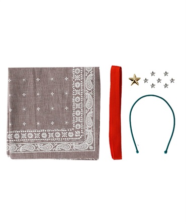 MUVEILアーカイブのオリジナルバンダナプリントのエコバッグキット。コンパクトにたためるデザイン。アレンジ用に星のビジューがセットになっています。