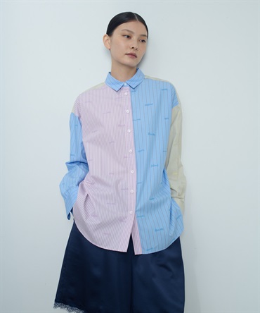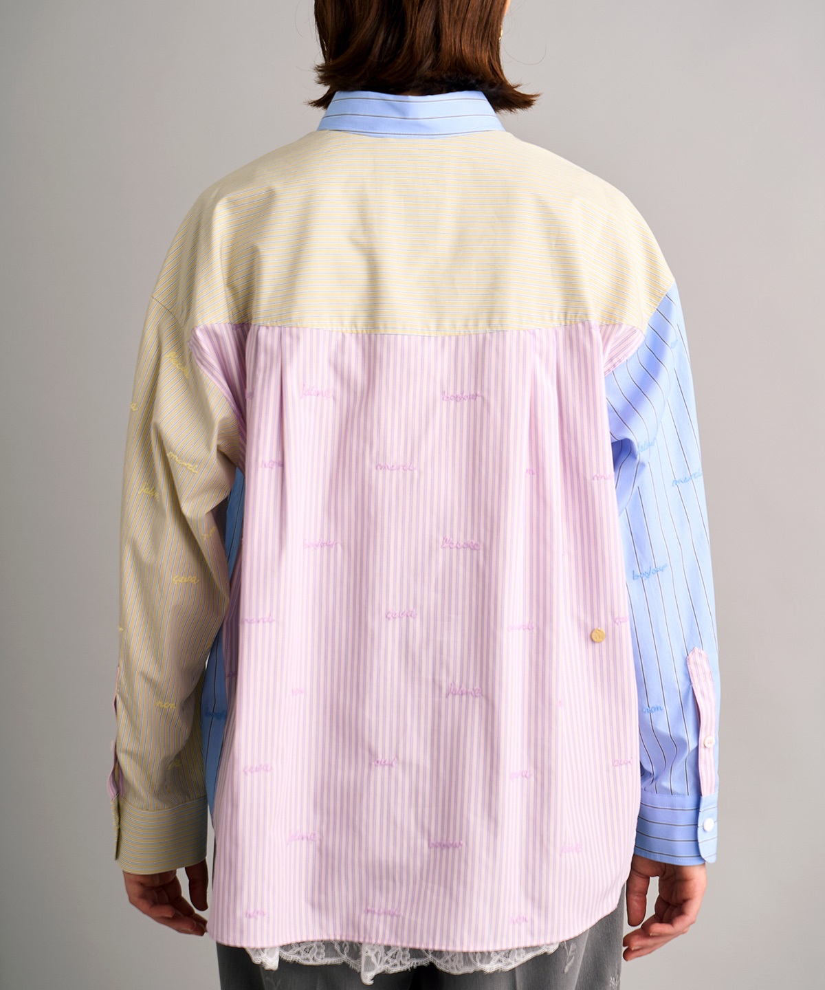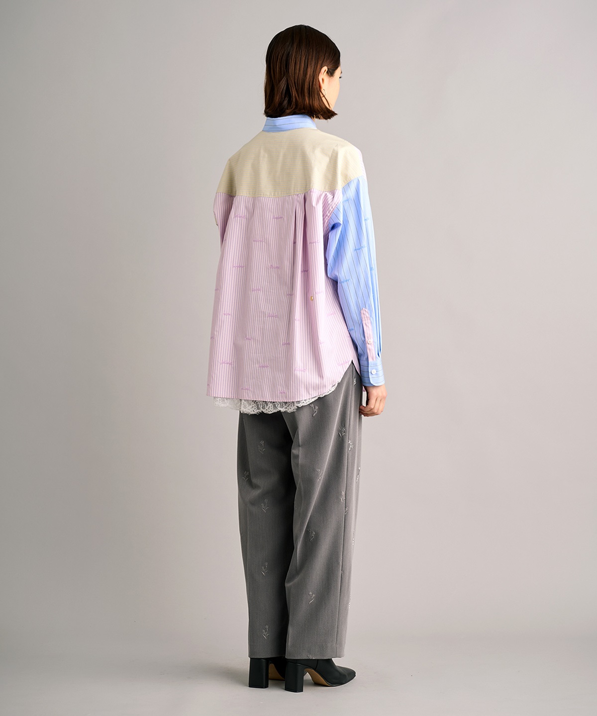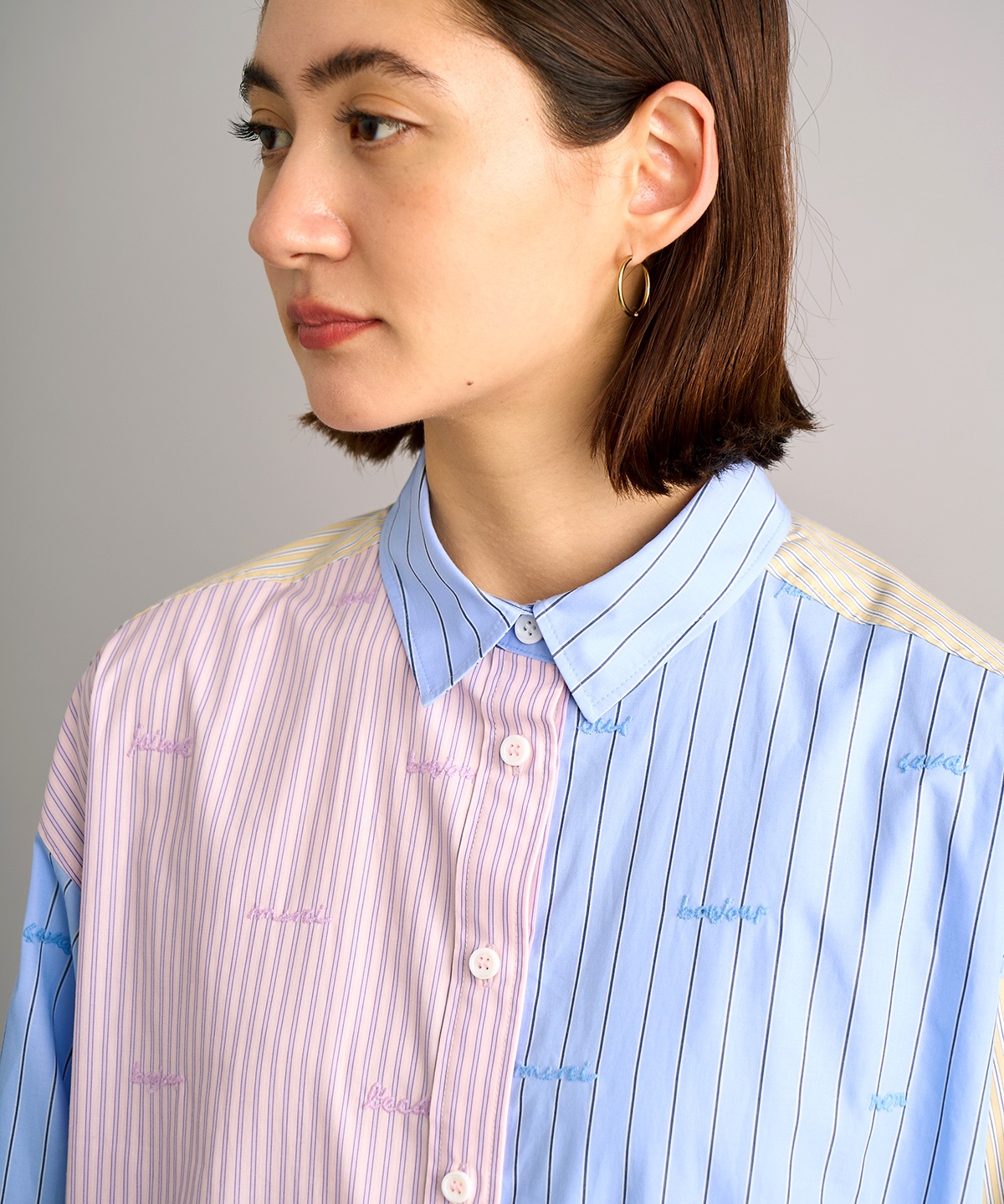 • レター刺繍ミックスパターンシャツブラウス(multi-36)