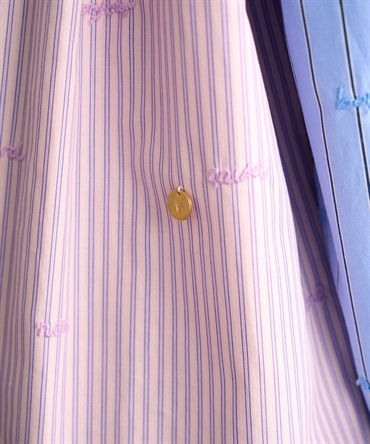 オーバーサイズシルエットの刺繍ブラウスシャツ。クラシカルなシルエットのシャツブラウスに手紙からインスピレーションを得た手書きのようなレター刺繍を施しました。カフスのイニシャル刺繍や後裾のレースでポイントを添えています。