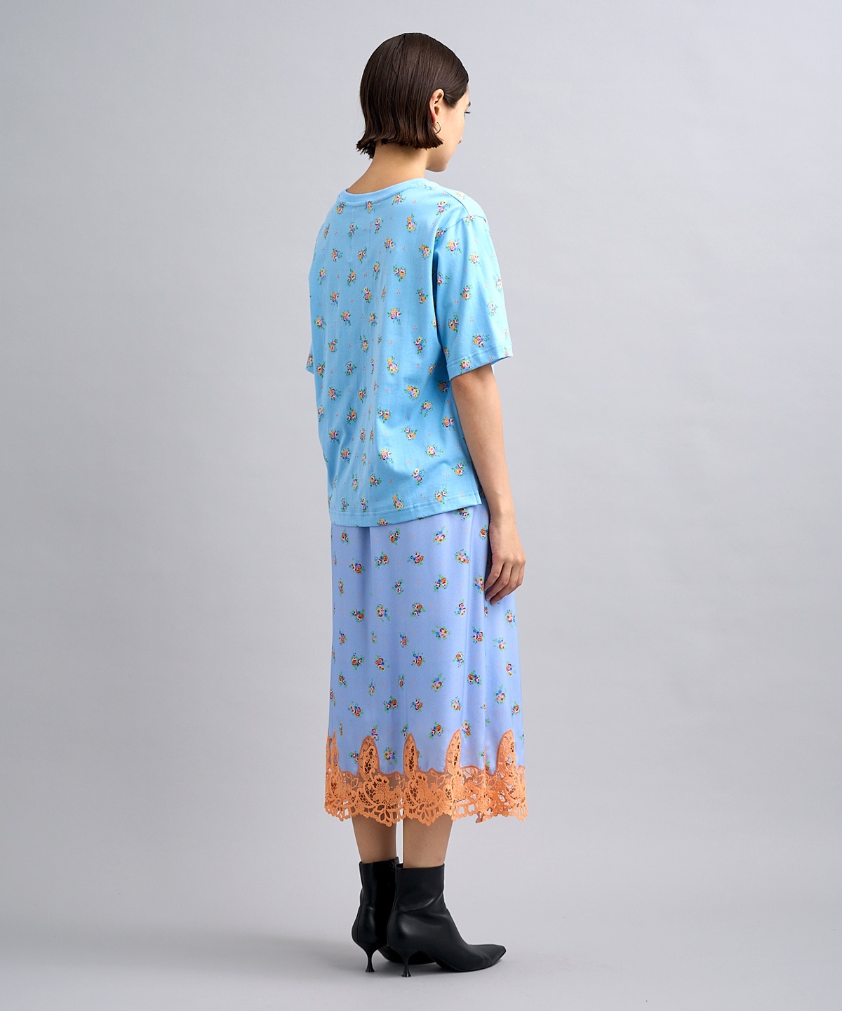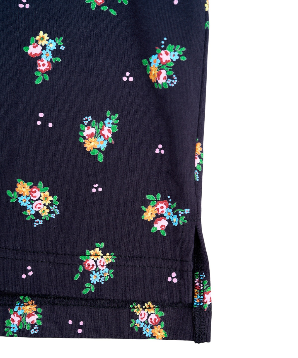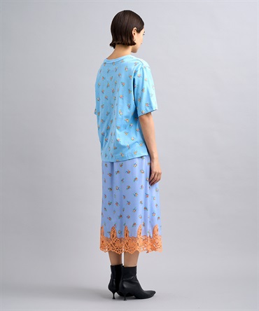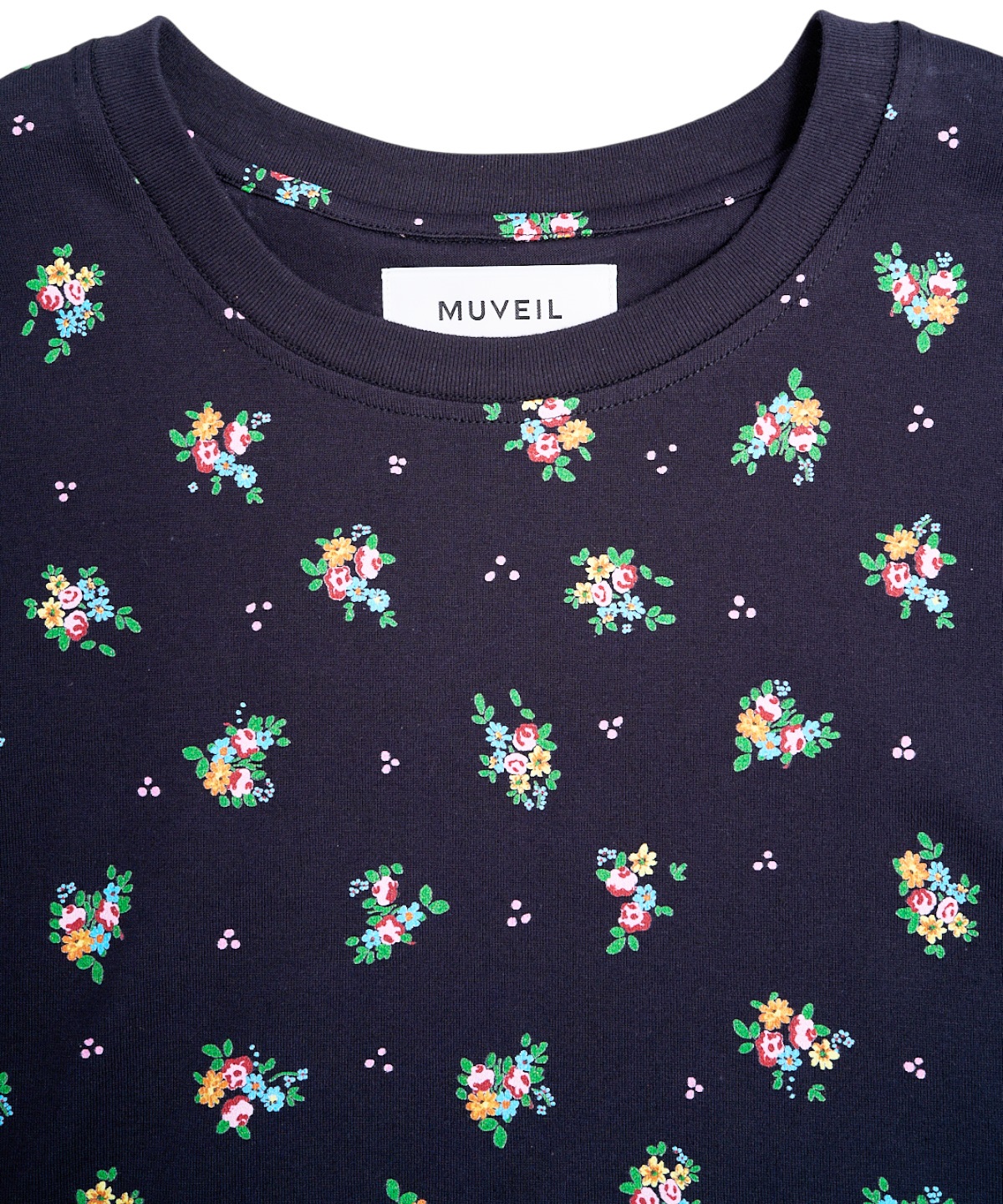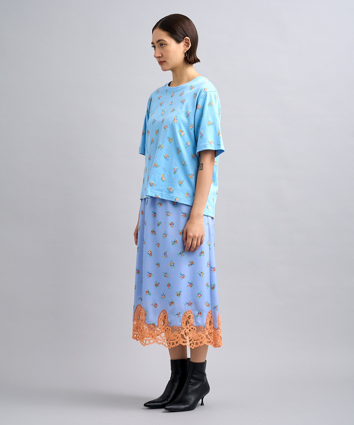 アンティークのティーカップに描かれた絵柄をモチーフに王室の優雅さを纏う特別なプリント生地。ゆったりとしたシルエットで体のラインをひろいません。