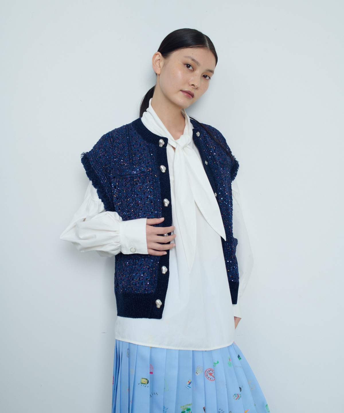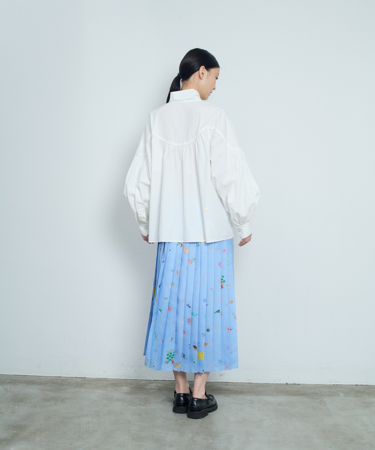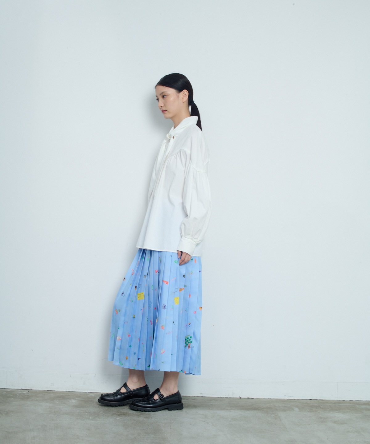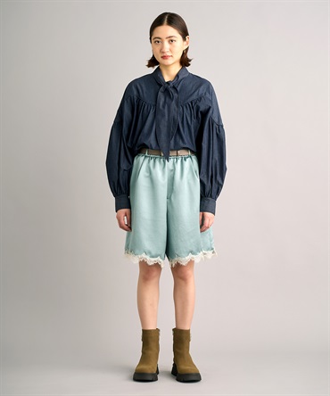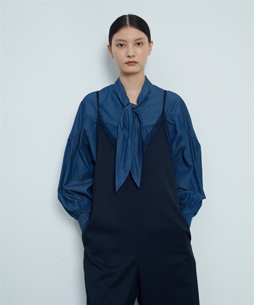 ヴィンテージライクな佇まいのボータイチュニックブラウス。シンプルなデザインながらコードテープで表情を添えました。生地に洗いをかけているためこなれた印象で着こなせます。肩回りはスッキリとしながら、ボリュームのあるバルーンスリーブがポイント。ボータイの結び方でカジュアルにもエレガントにもスタイリングできるチュニックブラウスです。