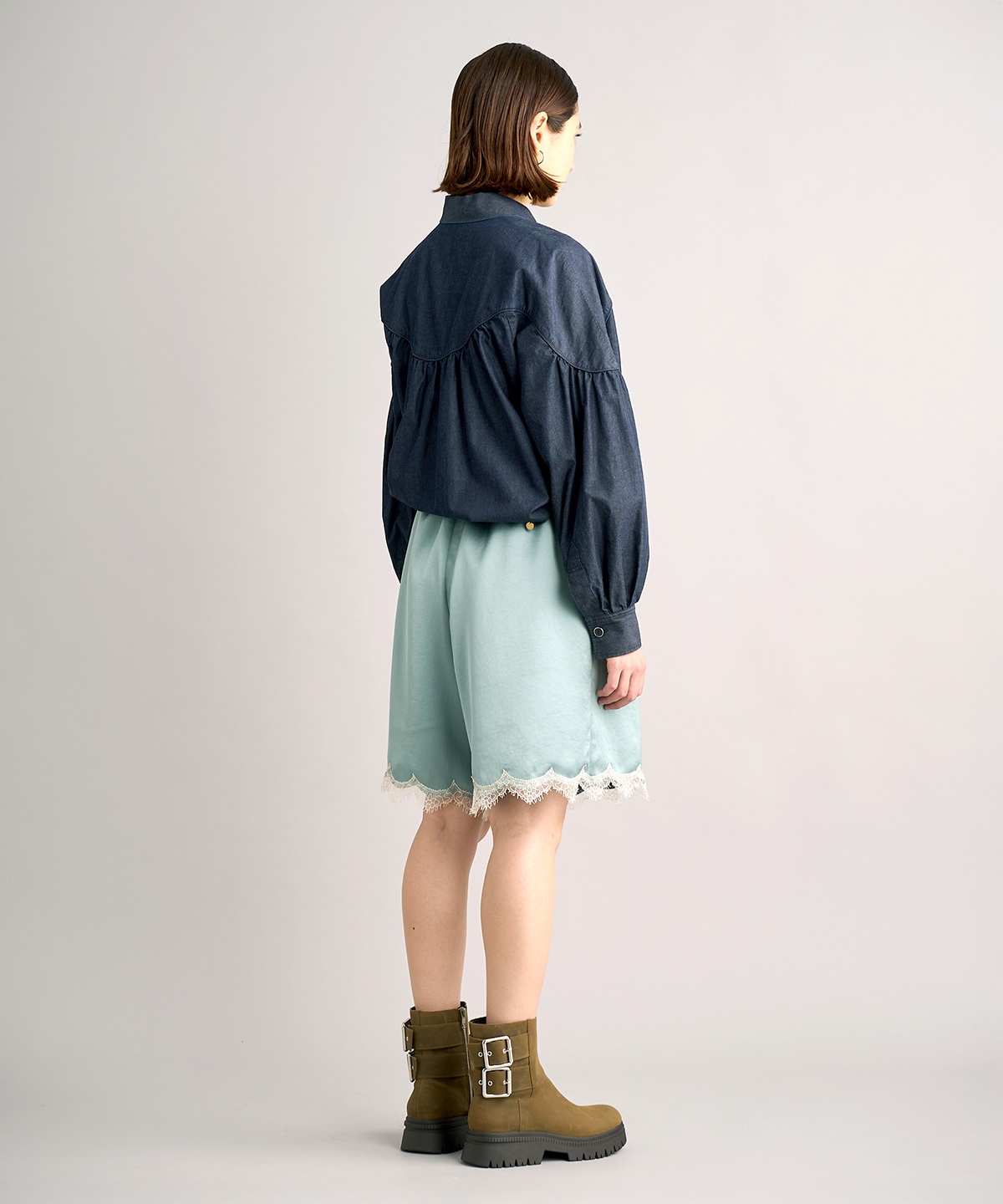 コンパクトヤーンのダンガリー素材。柔らかさがありながら高密度のしっかりとした素材です。