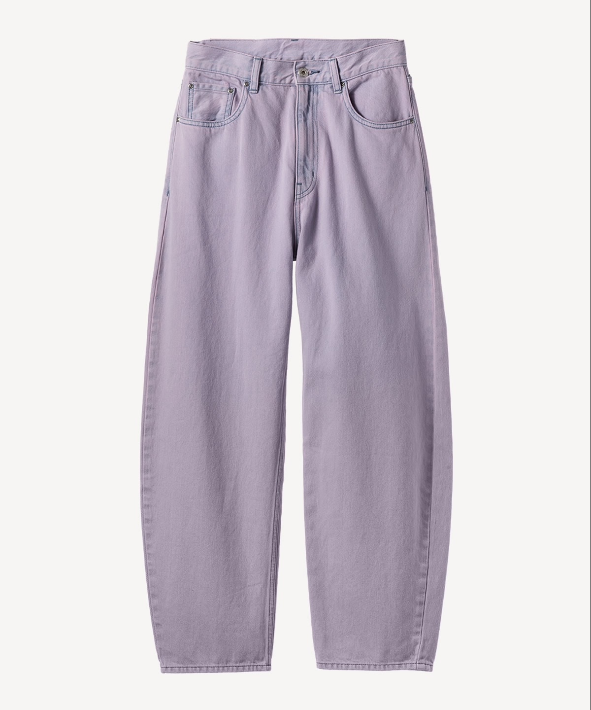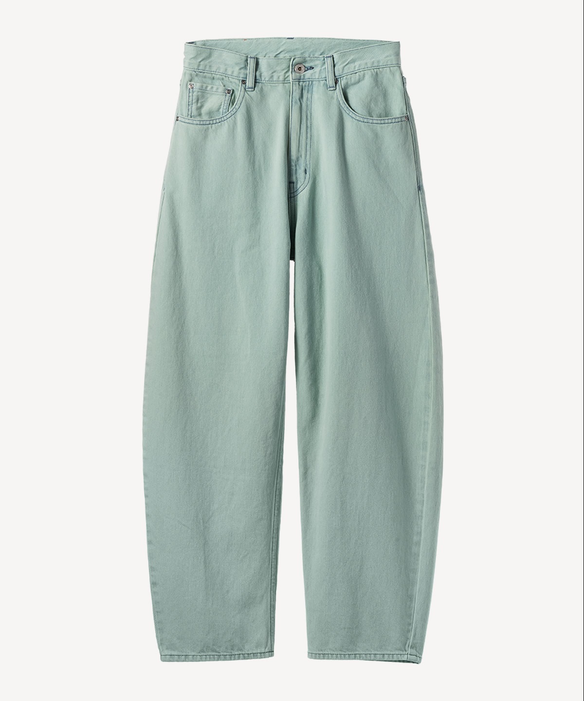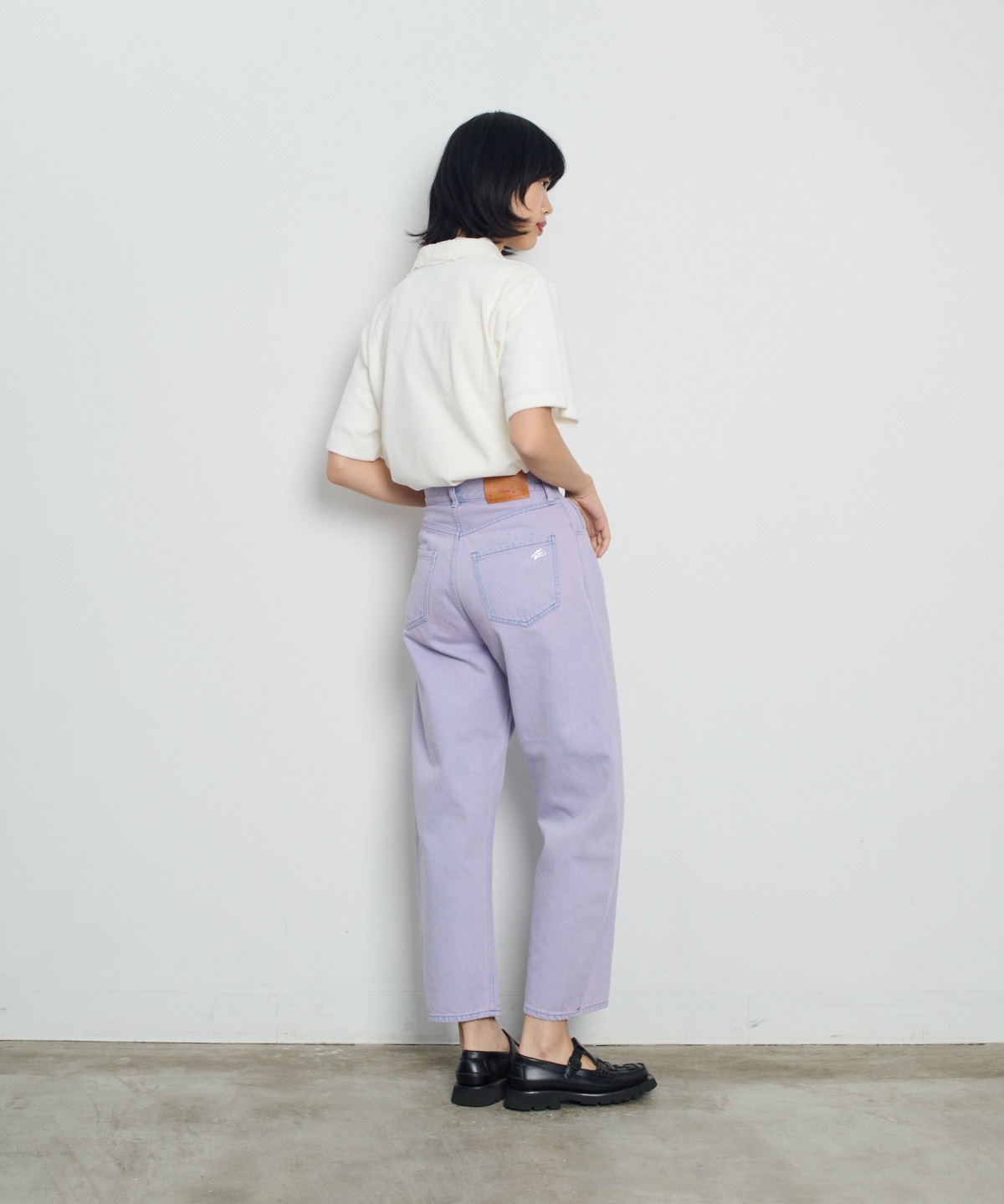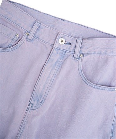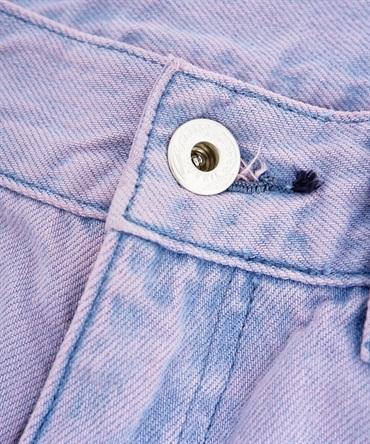 インディゴのデニムをブリーチした後にオーバーダイ加工を施し、ヴィンテージライクな陰影を表現しました。経年変化をお楽しみいただけるデニムです。