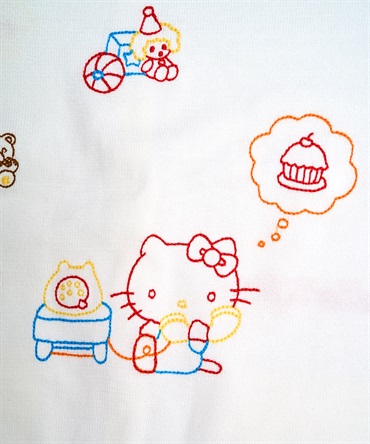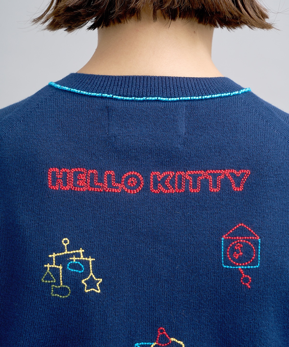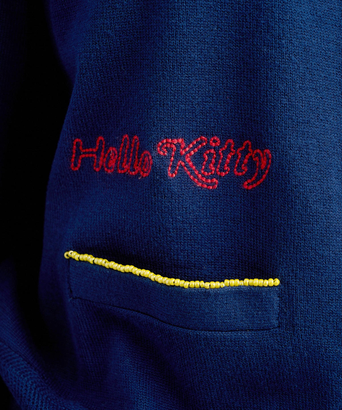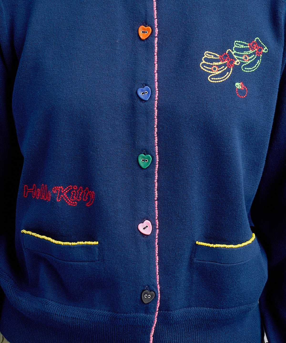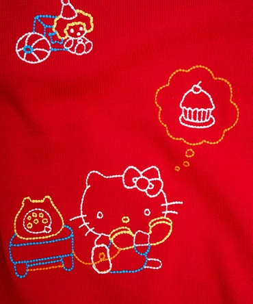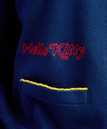 ハローキティの刺繍を贅沢に刺繍したUネックカーディガン。