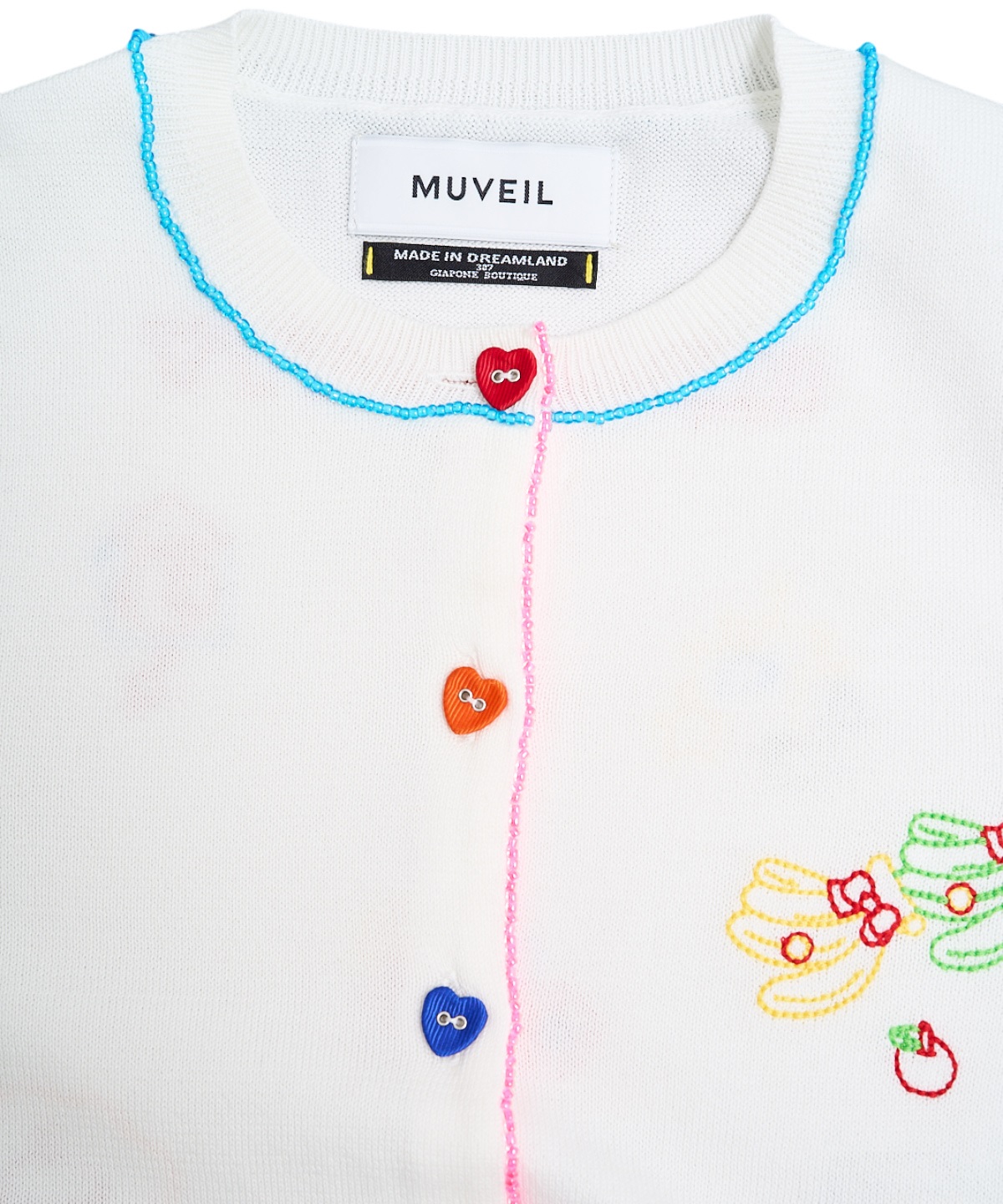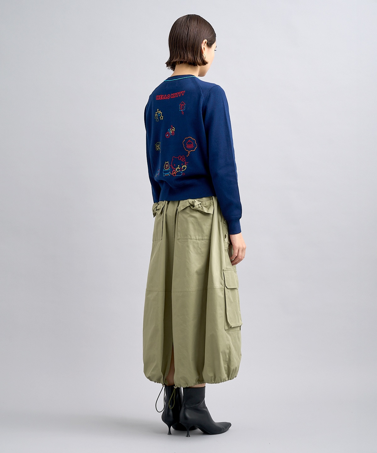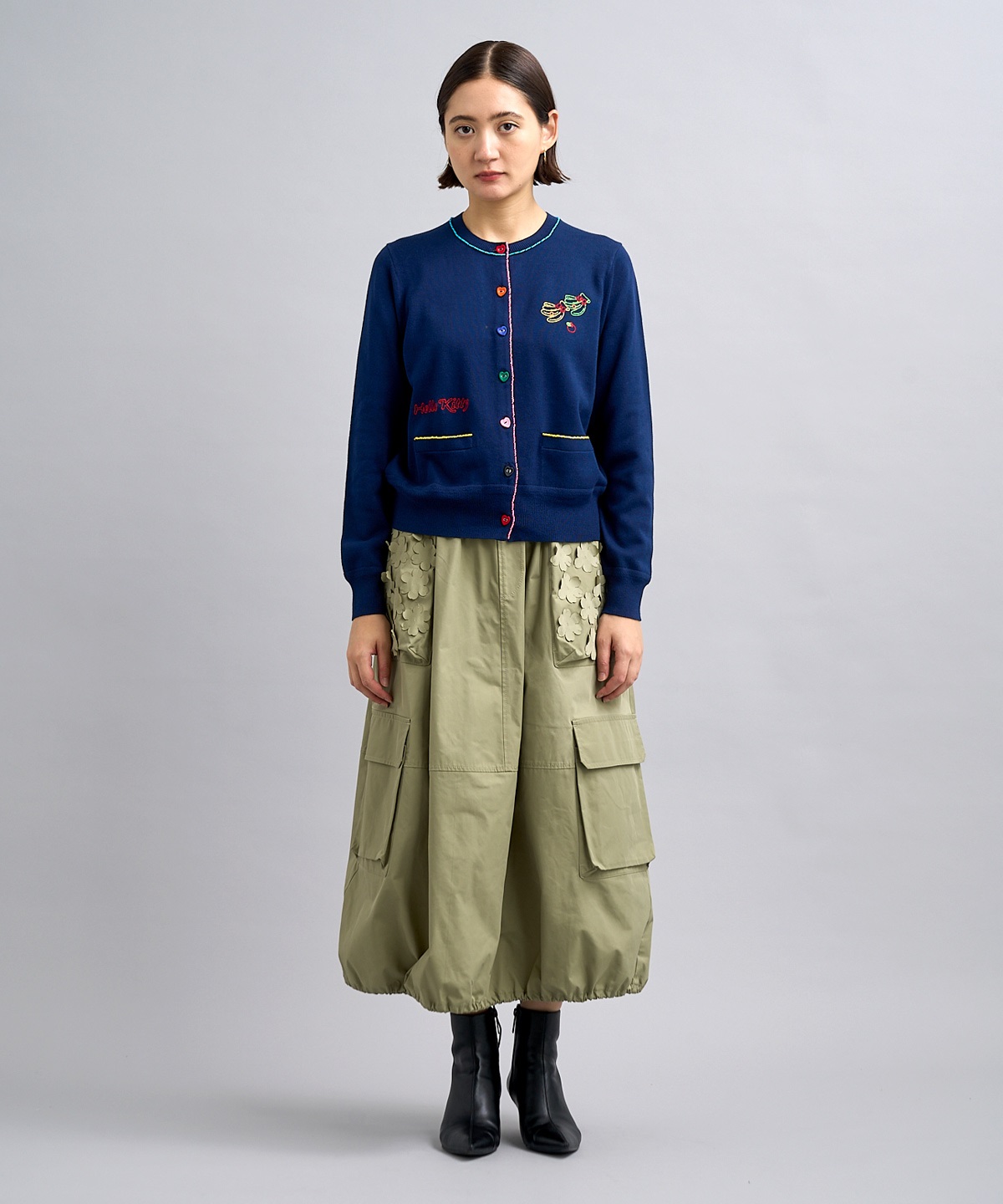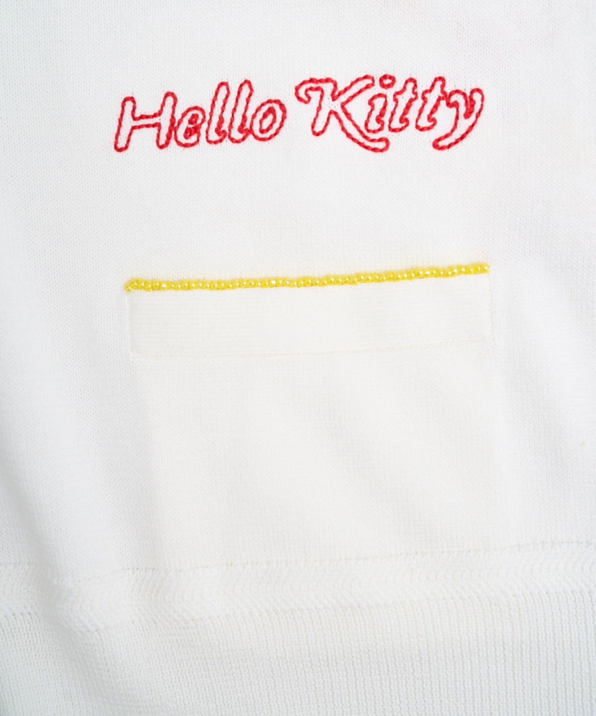 ハローキティの刺繍を贅沢に刺繍したUネックカーディガン。
