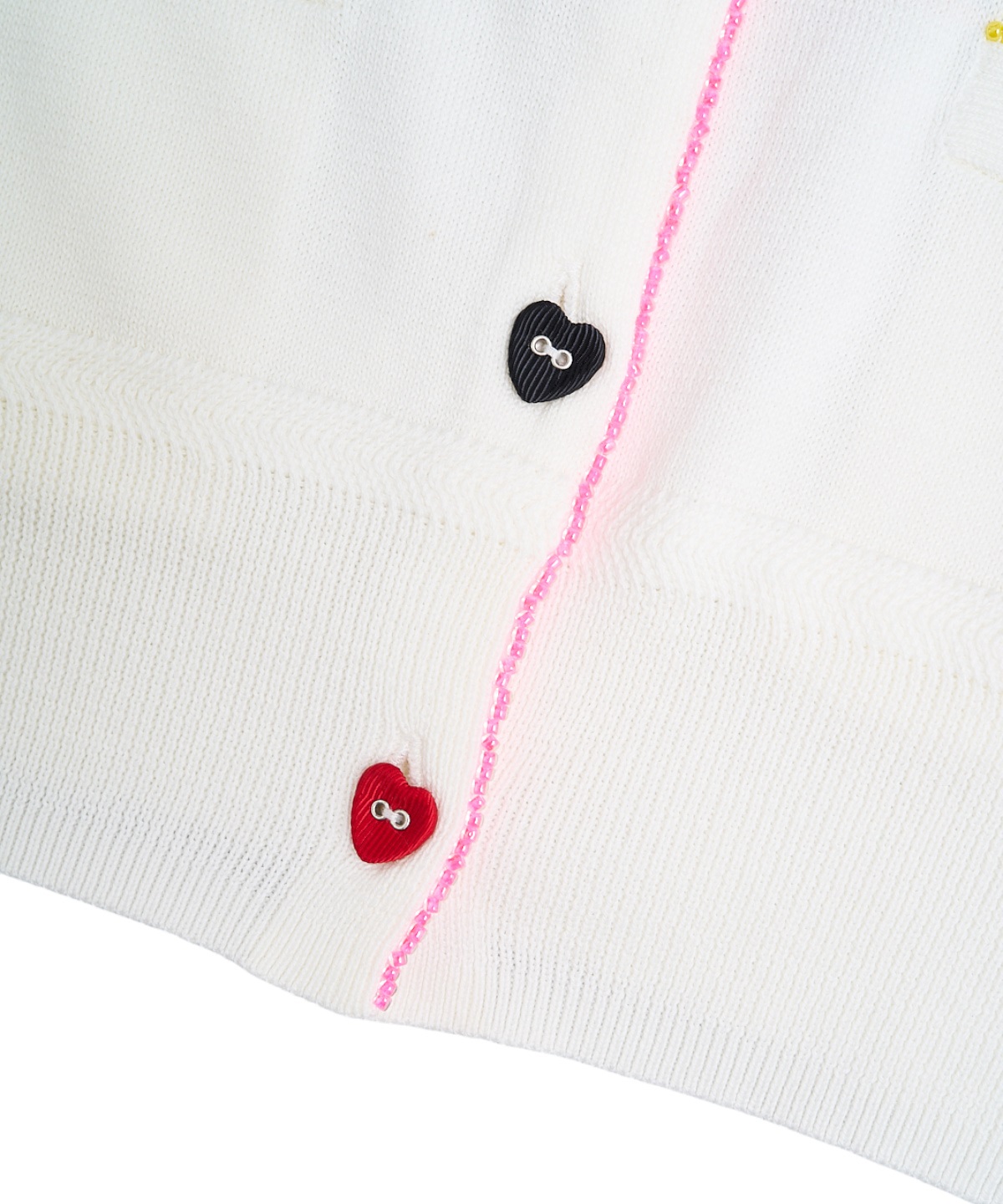 アクセントになるビーズラインやグログランでくるんだハートボタンと、ときめきを煌めきを添えました。