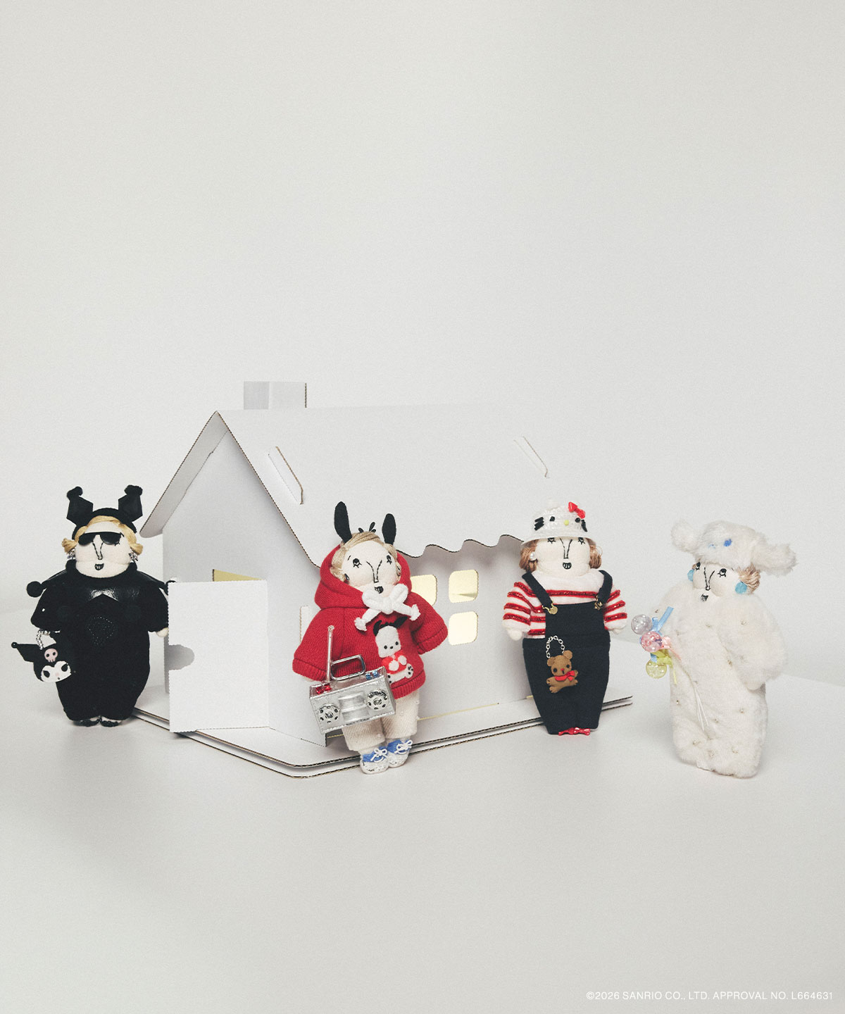 MUVEILが描いてきたのは、自由でときめきに満ちた子ども時代の記憶を、現在の装いと結び直す服づくり。本コレクションでは、サンリオのキャラクターたちをモチーフに、服そのものと丁寧に向き合いながら、時間と手間をかけて仕立てました。