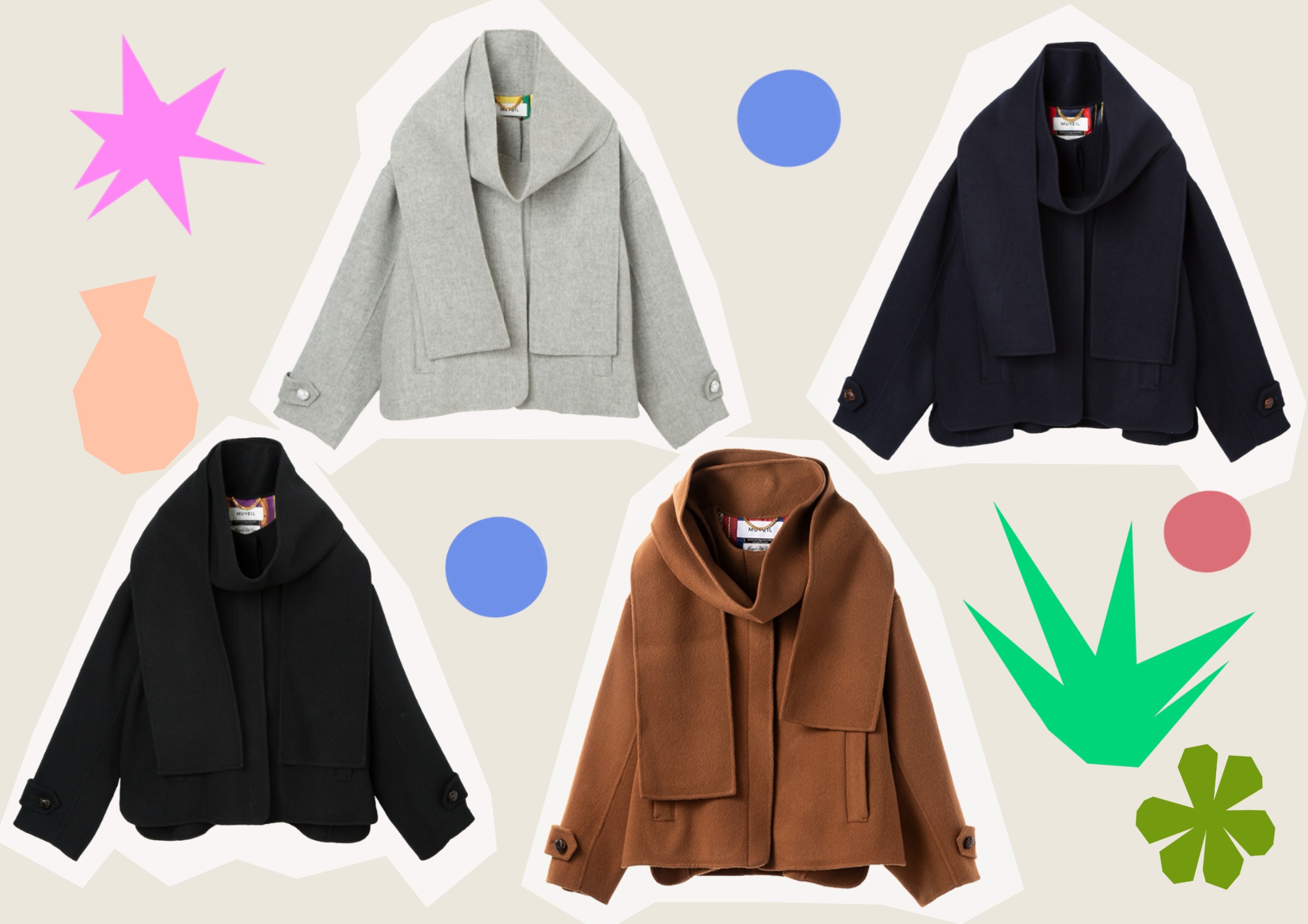 今季のMUVEILは、レイヤードやリバーシブルなど多面的な表情を楽しめるラインナップを揃えました。