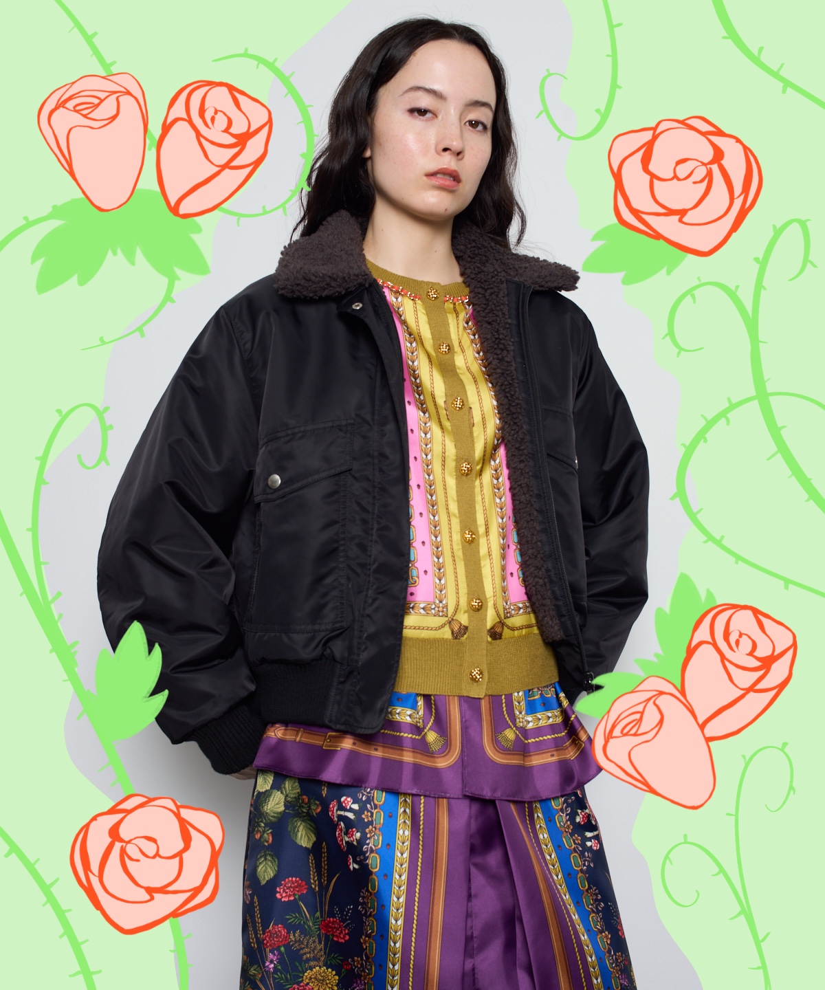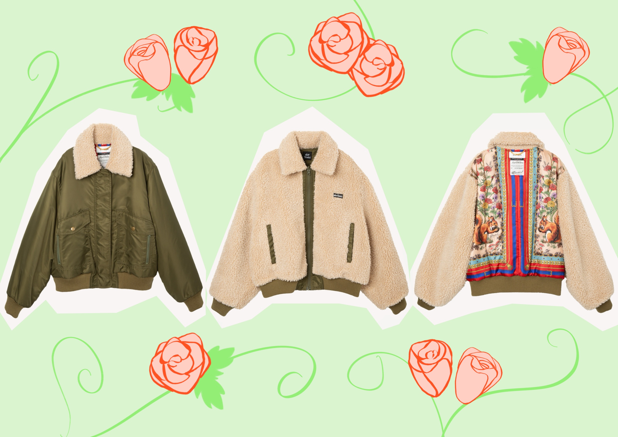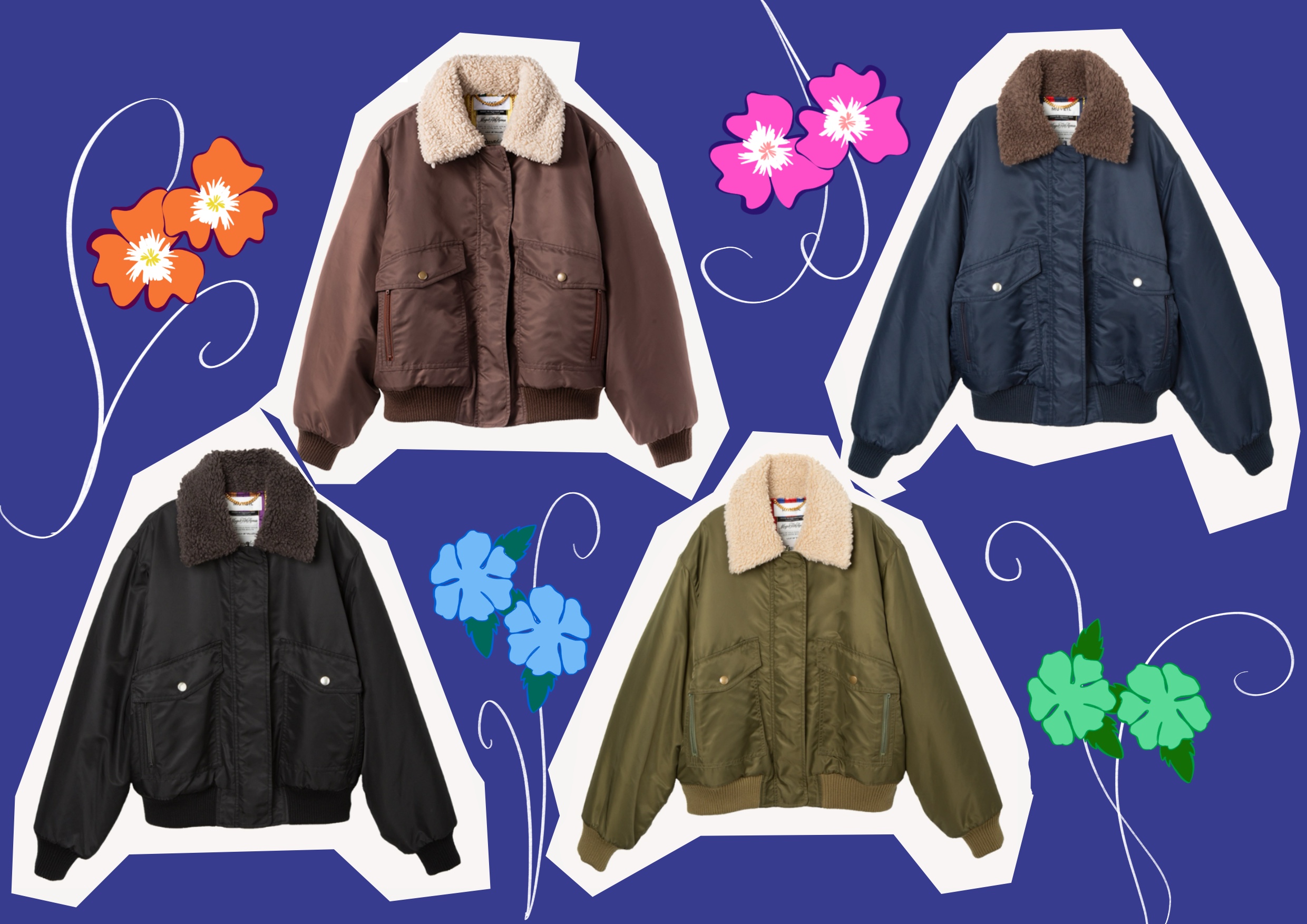 今年注目されているWILD THNGSコラボボンバージャケットは、MUVEIL Online Shop限定色を含めて4色展開です。